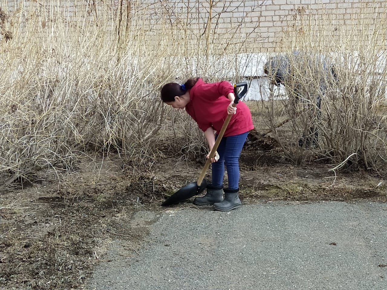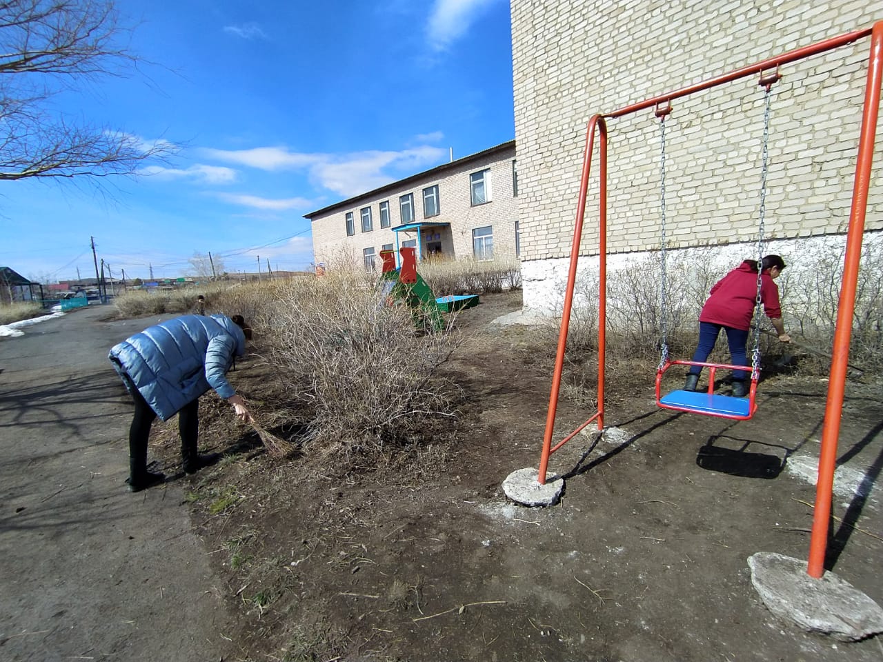 Чистили мусор, убирали сорняки на прилегающей территории школы