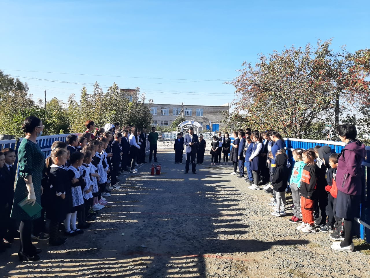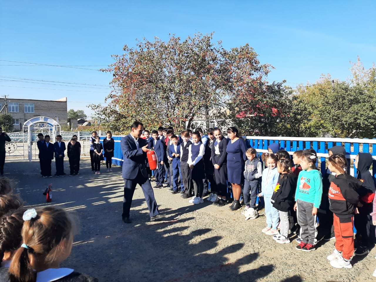 Провели противо-пожарное учение в школе. Учитель ОБЖ Салихов Р. Я. объяснил учащимся как вести себя в подобной ситуации, как пользоваться огнетушителем и рассказал о мерах предосторожности терроризма.