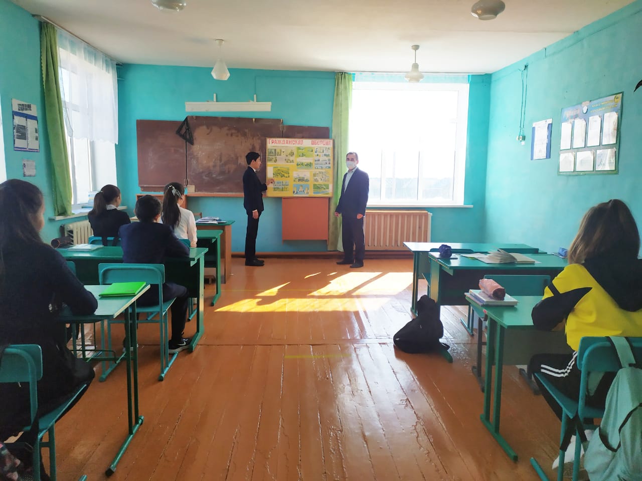 В рамках месячника Гражданской обороны учитель ОБЖ Салихов Р.Я провел беседу с учащимися на тему ГО в 8 классе.