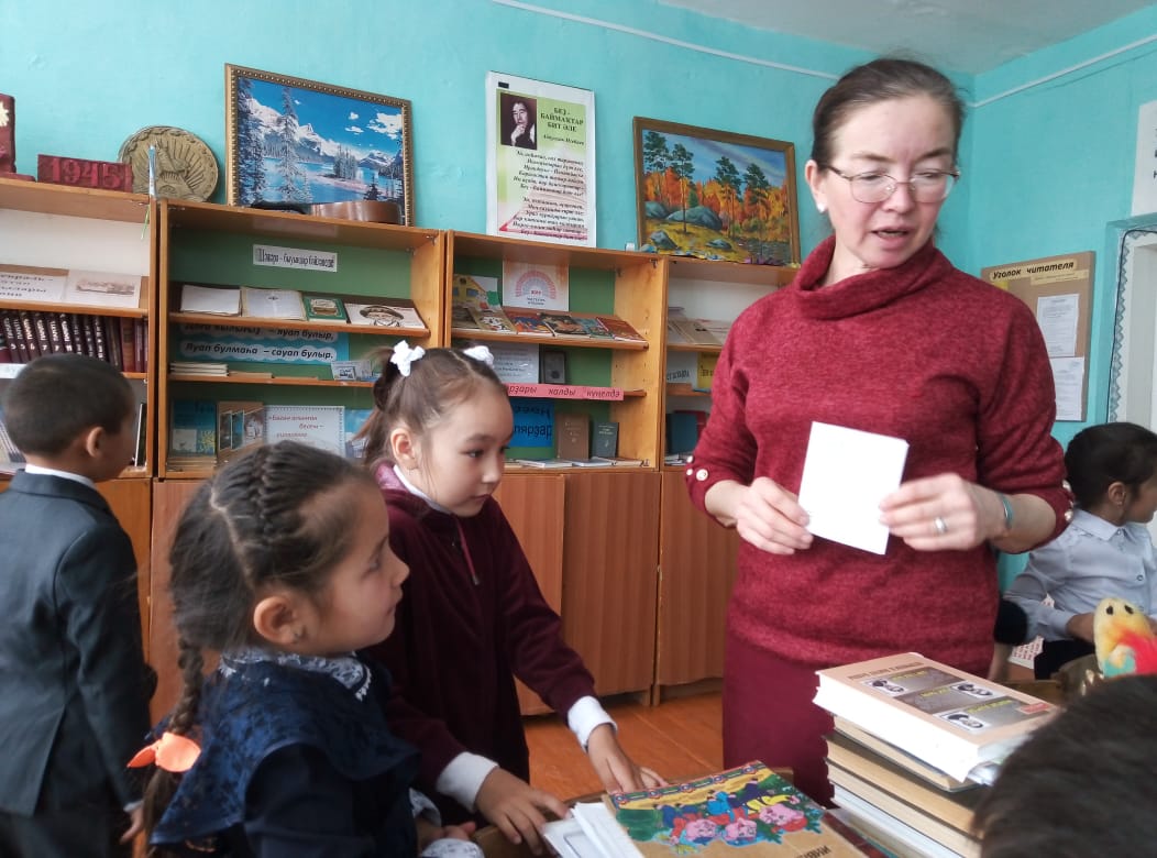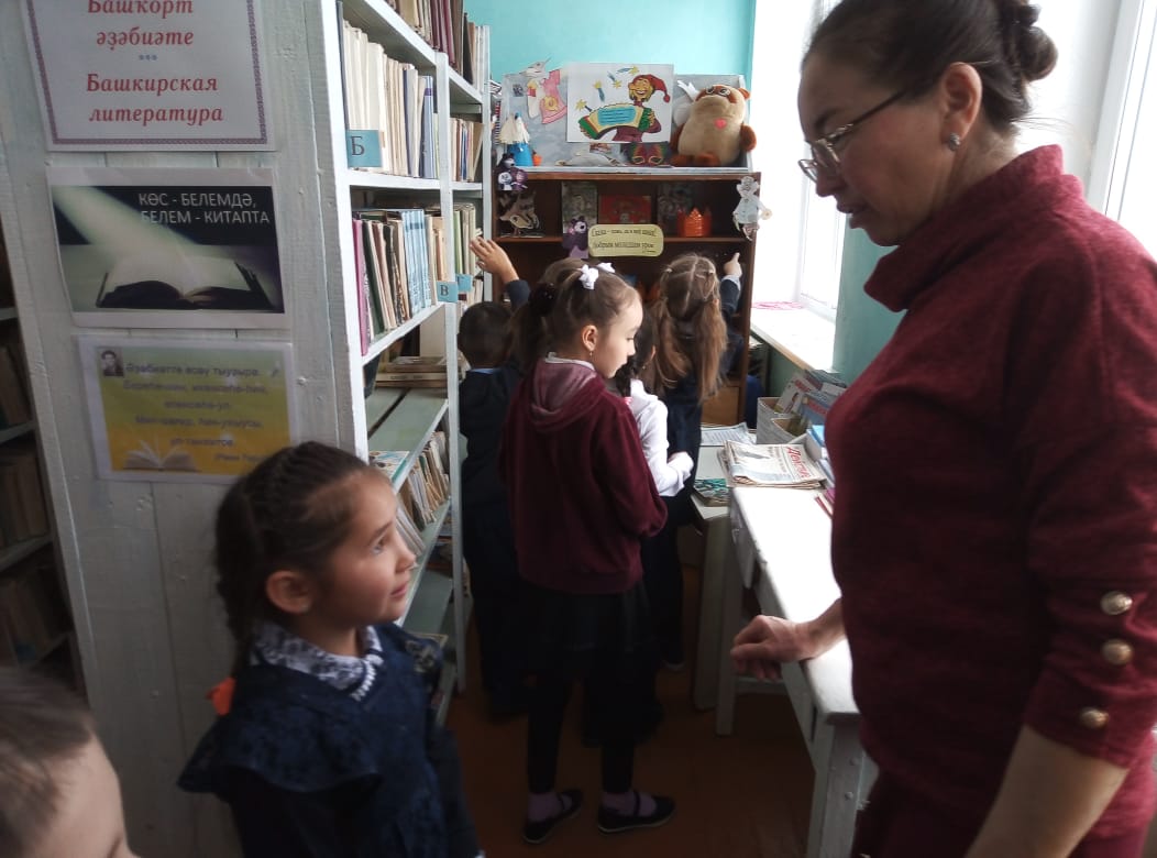 Сыңғыҙова Вәлимә Минтимер ҡыҙы етәкләгән 1 класс уҡыусылары китапхана менән танышырға килде. Мәктәпкә тәү тапҡыр аяҡ баҫҡан малайҙар һәм ҡыҙҙар китапхананы бик ҡыҙыҡһынып ҡаранылар. Шул тиклем күп китаптарҙы күреү уларға бигерәк тә ҡыҙыҡ булды. Китапханасы Хажиәхмәтова Гөлфиә Нотфулла ҡыҙы балалар өсөн яҙылған яңы китаптар күргәҙмәһе менән таныштырҙы, китап тураһында бик ҡыҙыҡлы һәм файҙалы мәғлүмәт бирҙе, шулай уҡ, балалар төрлө һорауҙарға яуап бирҙеләр. Ниндәй баласаҡ әкиәтһеҙ үтһен инде? Уҡыусылар үҙҙәре яратып тыңлаған, уҡыған, ҡараған әкиәттәре тураһында һөйләнеләр. Һәр кем бик теләп ҡатнашты был осрашыуҙа һәм уҡырға китаптар ҙа алдылар.Ошо китап һөйөүсе кескәй малайҙар һәм ҡыҙҙар киләсәктә беҙҙең китапхананың тоғро дуҫына әйләнер тигән өмөттә ҡалабыҙ.