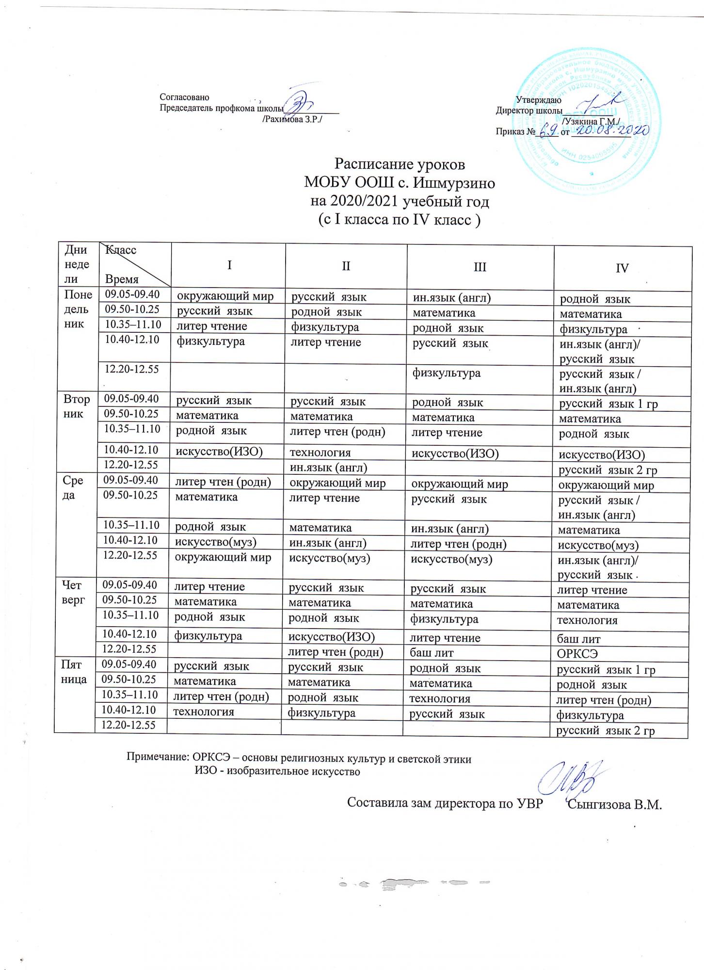 Расписание 1-4 кл на 20-21 уч. год