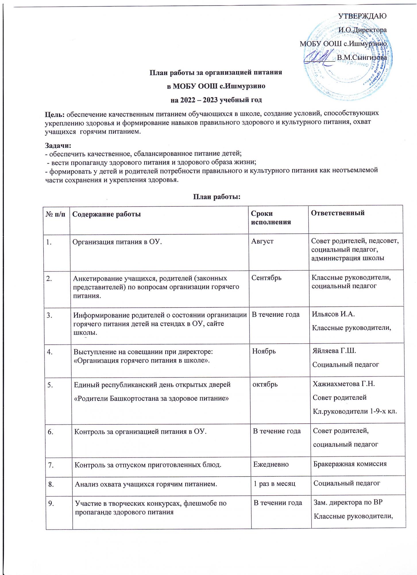 По вопросам организации питания можно обратиться к директору школы Р.Я. Салихову по телефону: 8 (34751) 4-26-37, специалисту по питанию отдела образования Г.Г. Камаретдиновой по телефону: 8 (34751) 3-50-29