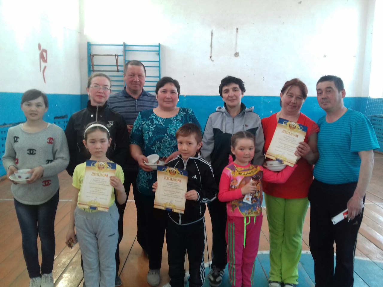 Командам необходимо было проявить свою ловкость, сноровку и дружную работу в спортивных конкурсах. Дети и родители, на каждом этапе конкурсной программы, сражались очень самоотверженно. Каждое задание конкурса выполнялось с особым старанием и желанием победить. Можно сказать, что все команды проявили себя с лучшей стороны. Тон соревнованиям задавали - папы: бодрые, подтянутые и даже в чем-то непобедимые. Конечно, великолепно справились со всеми заданиями - дети. Это они еще с пеленок долгие годы закаляли постоянными тренировками и объединяли своих родителей в дружескую команду. Соревнования судило строгое, но справедливое жюри. Известно, что в любом соревновании есть победитель. Так и в этом чемпионате по семейному многоборью определился победитель. Среди команд места распределились следующим образом: 1 место – семья Нургалиных, 2 место – поделили между собой семья Кашкаровых и Хажиахметовых. И независимо от того, как распределились места, все участники и зрители соревнований получили массу положительных эмоций и приятных впечатлений. Праздник удался на славу. Все участники были награждены грамотами, памятными и сладкими призами.