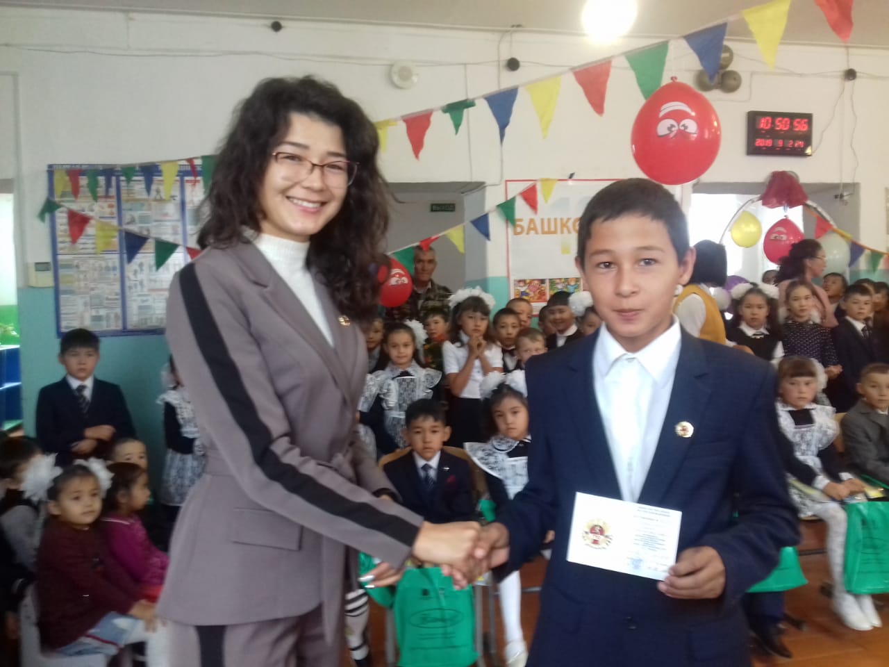 2 сентября в с. Ишмурзино на торжественной линейке посвященной ко Дню знаний ученикам по итогам I квартала были вручены знаки отличия и удостоверения Всероссийского физкультурно-спортивного комплекса «Готов к труду и обороне».