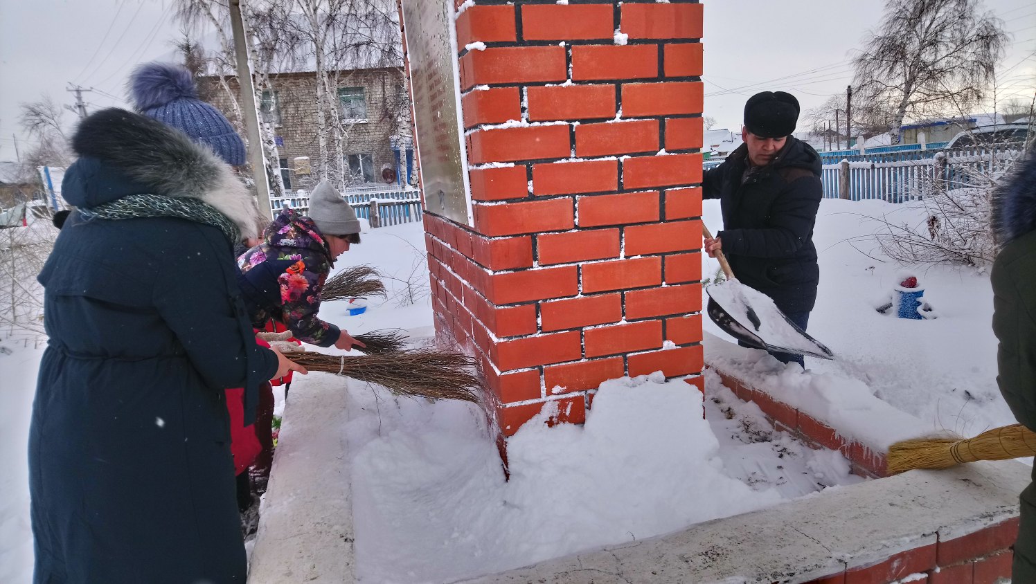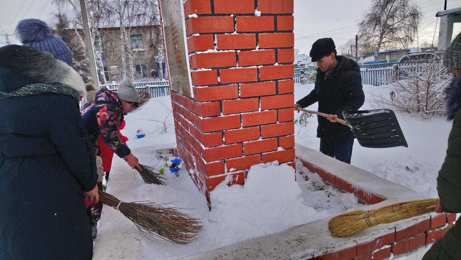 Сегодня учащиеся 5-6 класса МОБУ ООШ с. Ишмурзино расчистили памятник и обелиск от снега