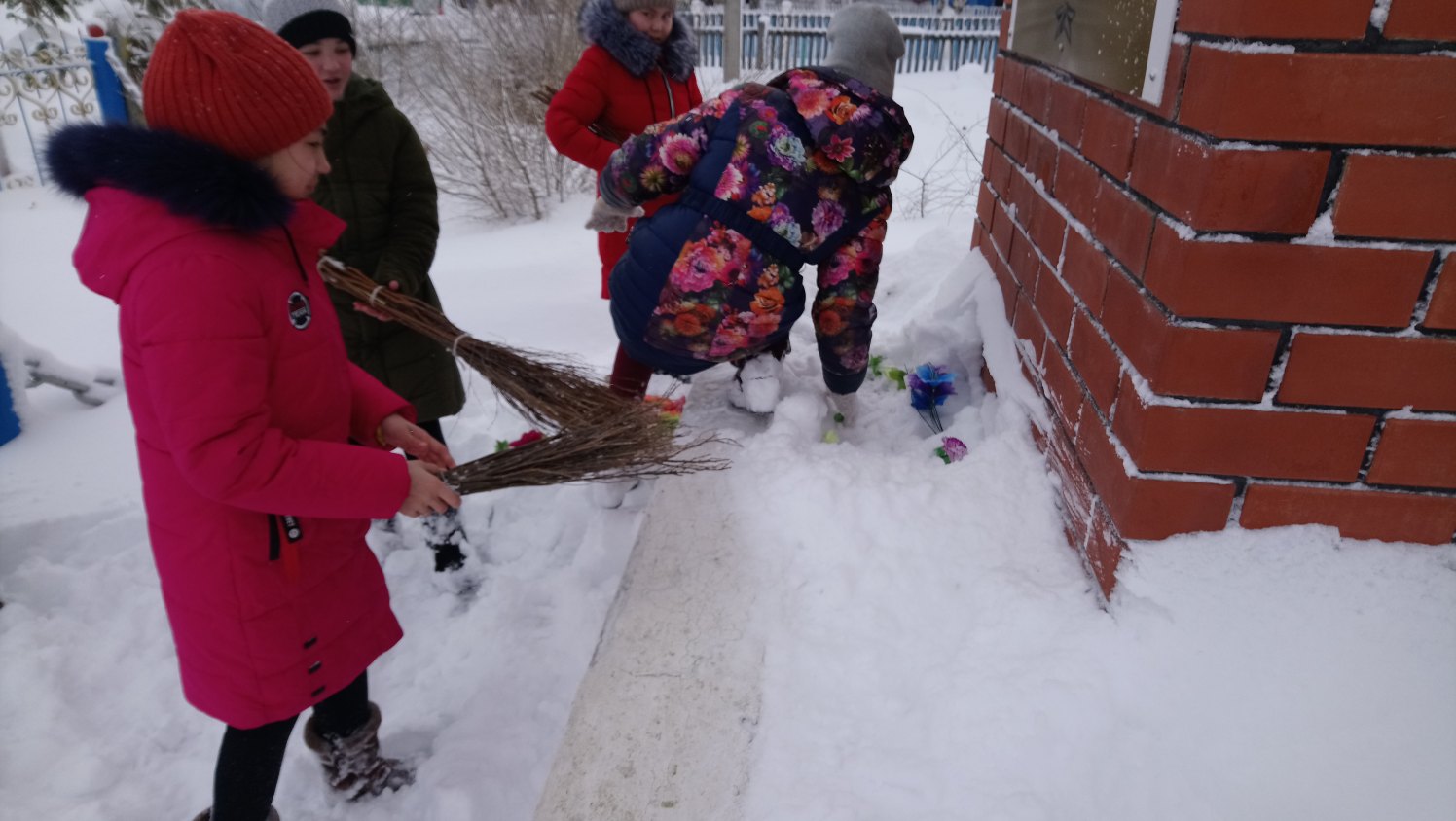 Сегодня учащиеся 5-6 класса МОБУ ООШ с. Ишмурзино расчистили памятник и обелиск от снега. Каждую среду учащиеся школы посещают ветеранов труда и помогают (расчистка от снега).