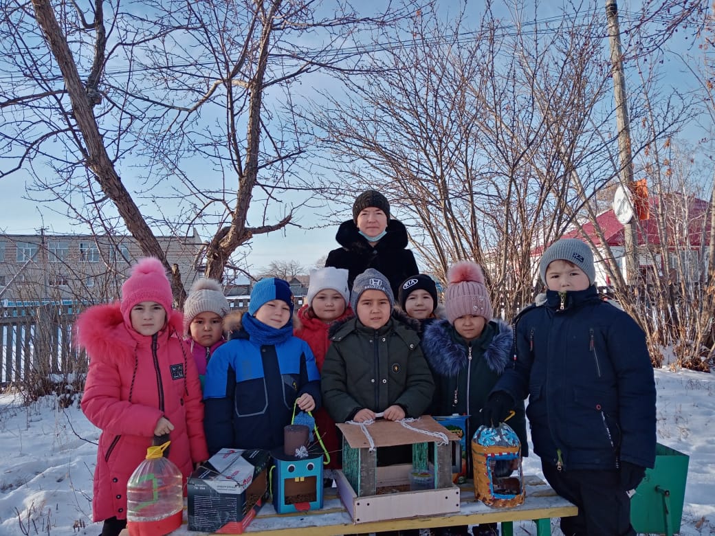 "Ҡанатлы дуҫтарыбыҙға" ярҙам күрһәтеү маҡсатында, I класс уҡыусылары, етәкселәре Хажиәхмәтова Г.Н. менән ҡоштарға төрлө емдәр һалып ағастарға тағараҡтар элделәр. Беҙгә ярҙам итеүсе атай-әсәйҙәребеҙгә оло рәхмәтебеҙҙе белдерәбеҙ.