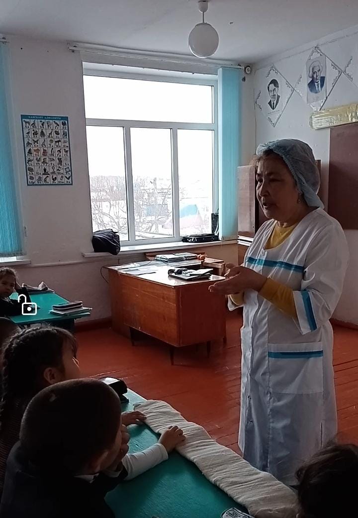 Ишмырҙа ауылы медпункты фельдшеры Ҡотлоғужина Зилә Ильяс ҡыҙы уҡыусыларға дөрөҫ туҡланыу, төрлө осраҡта беренсе ярҙам күрһәтеү, талпан энцефалитынан һаҡланыу тураһында бик файҙалы мәғлүмәттәр һөйләп үтте, уҡыусыларҙың һорауҙарына яуап бирҙе.