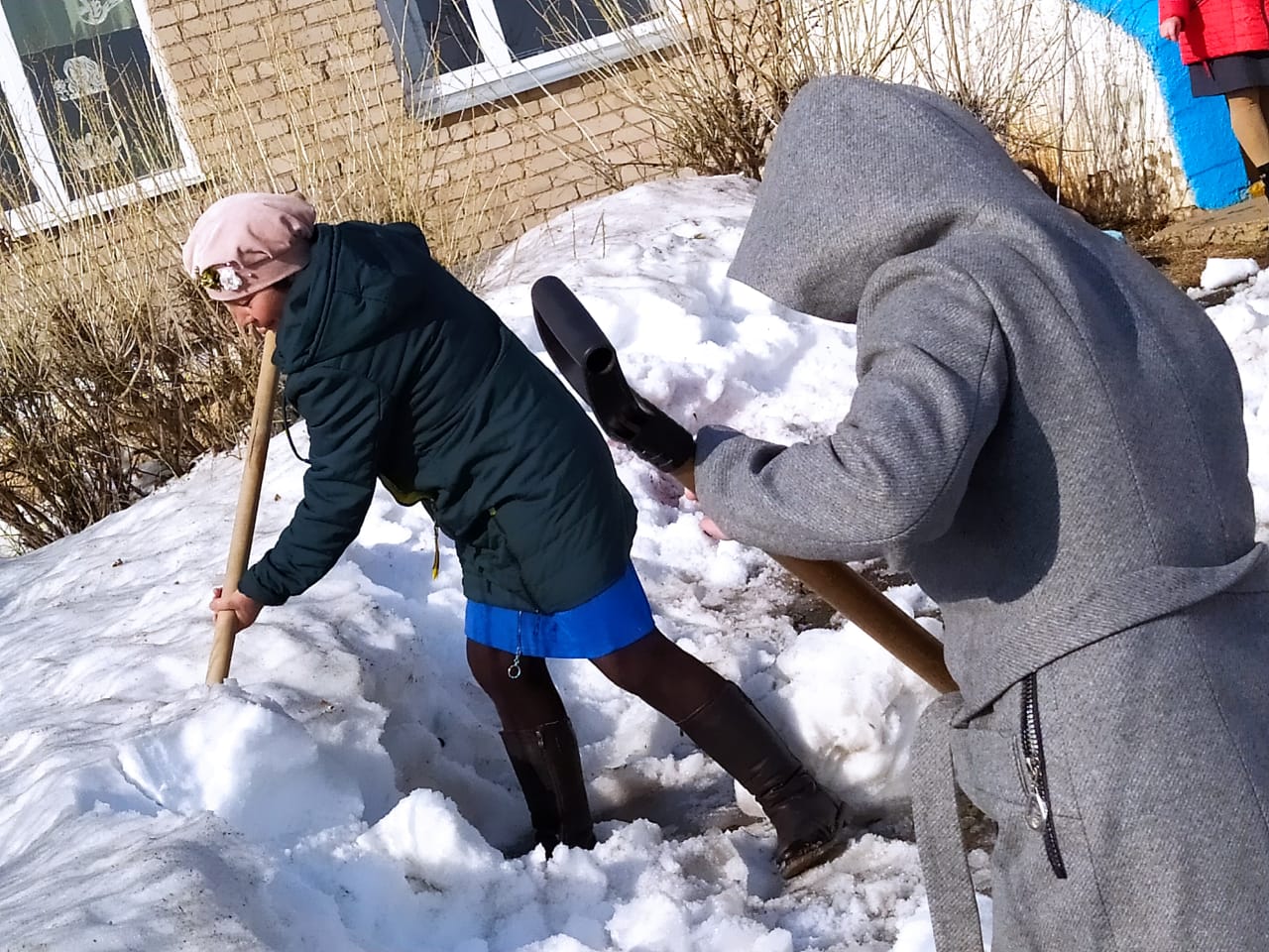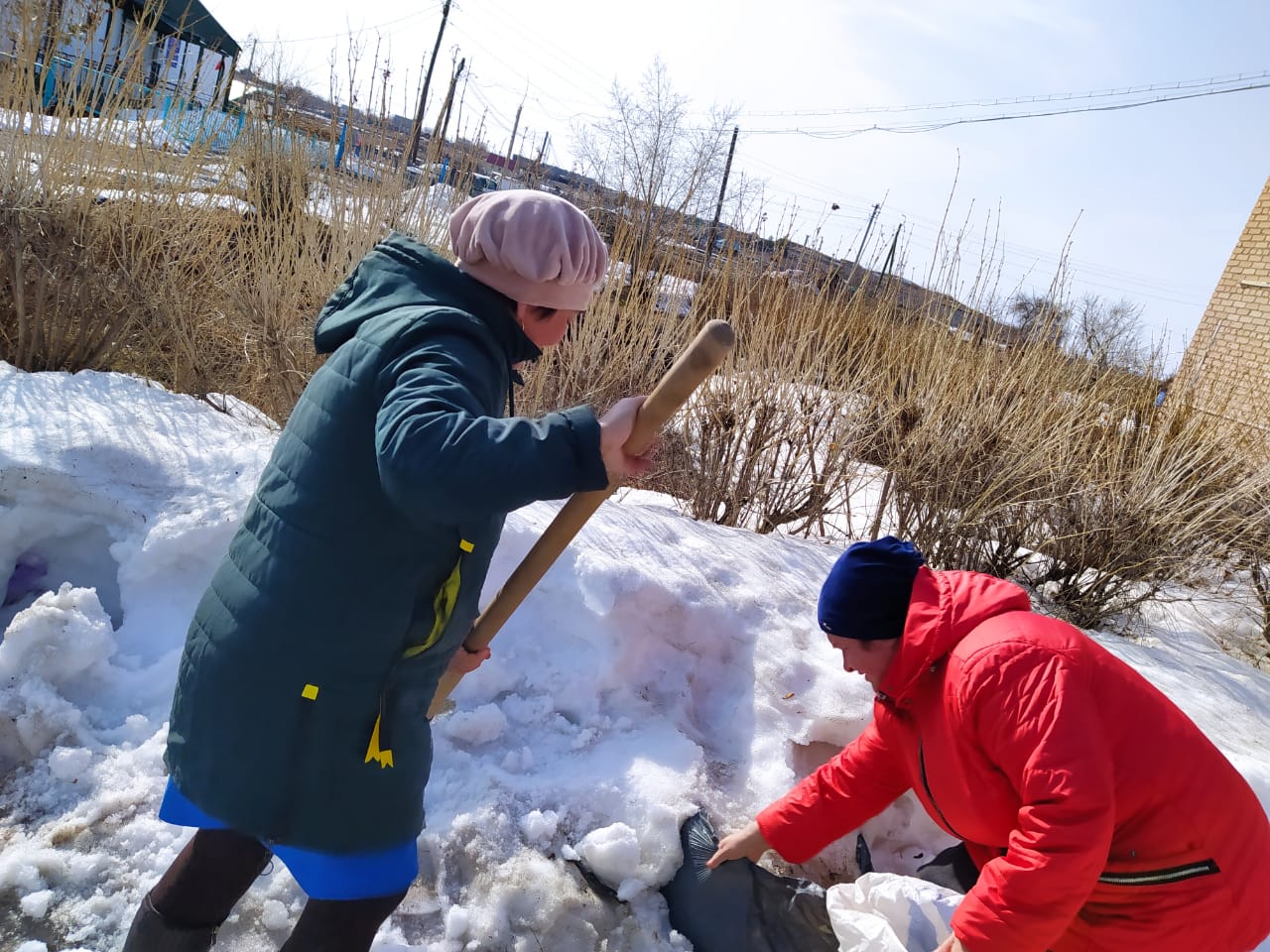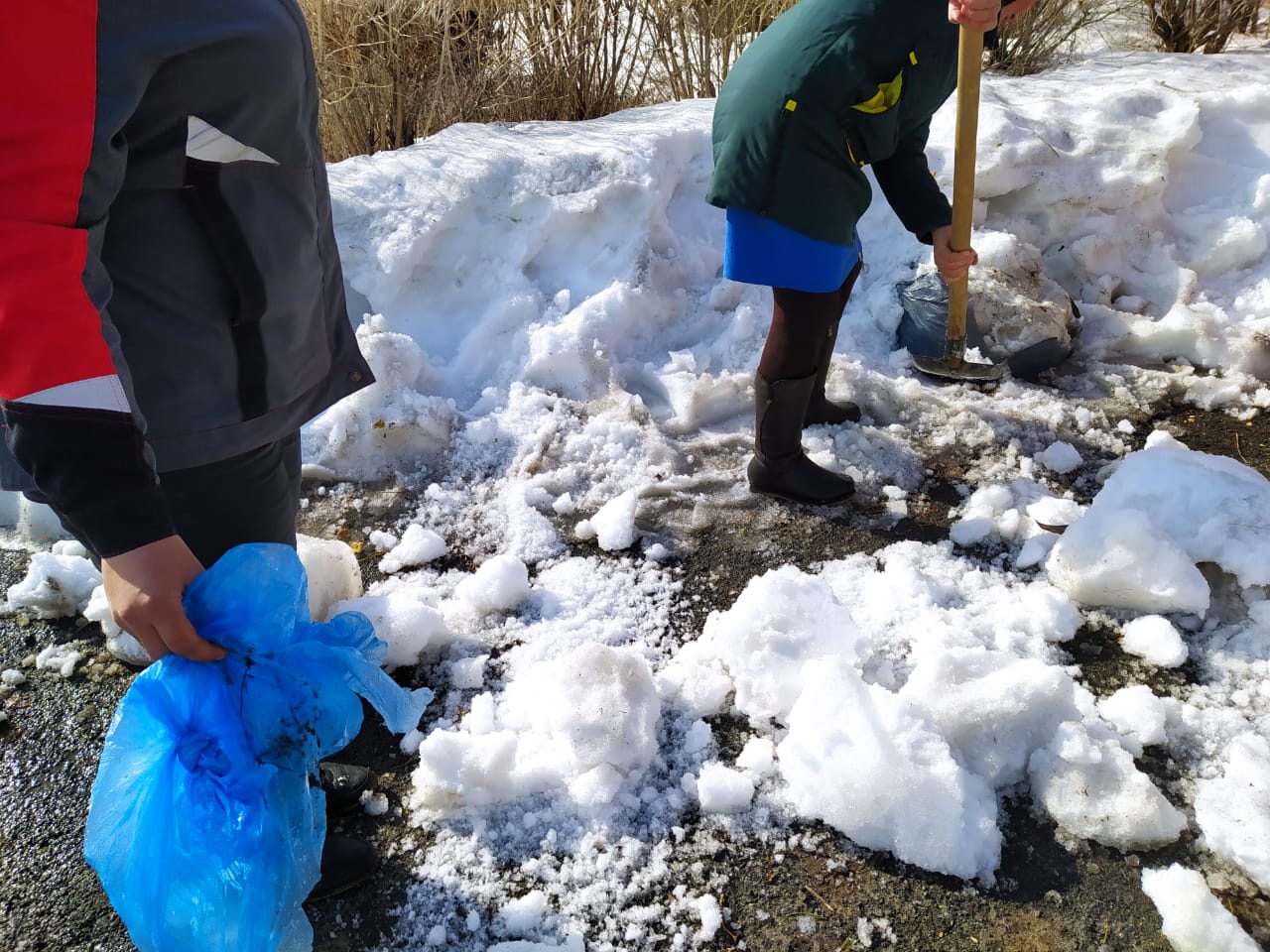 Провели экологический субботник в НОШ с. Семеновское. Очистили территорию школы от снега.