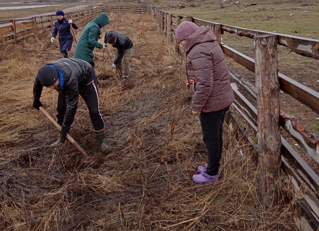 Коллектив МОБУ ООШ с. Ишмурзино, техперсонал вышли сегодня на субботник. Посадили деревья на аллее, расчистили от мусора территорию.