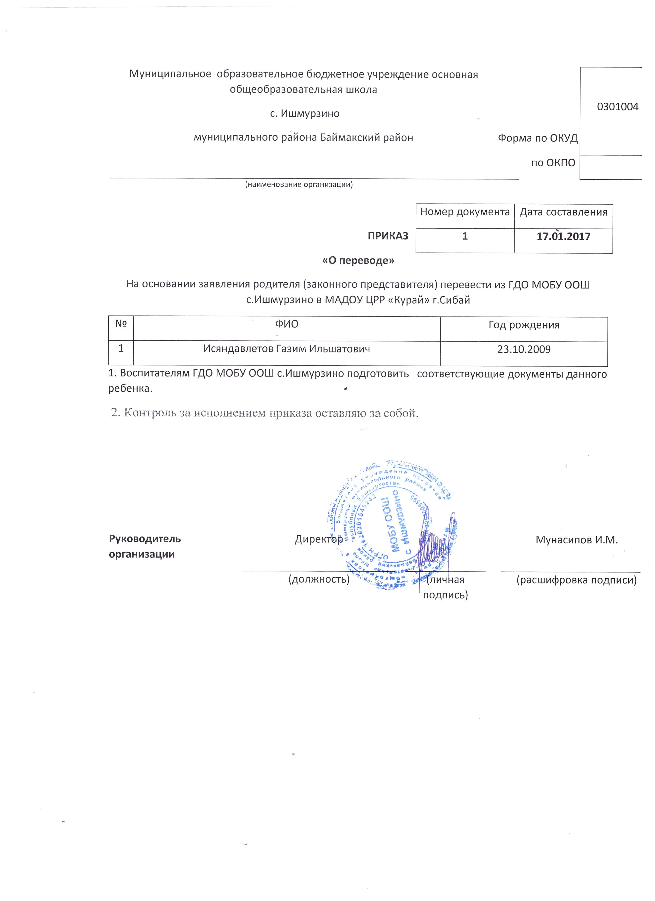 1. Группа дошкольного образования с. Ишмурзино при МОБУ ООШ с. Ишмурзино